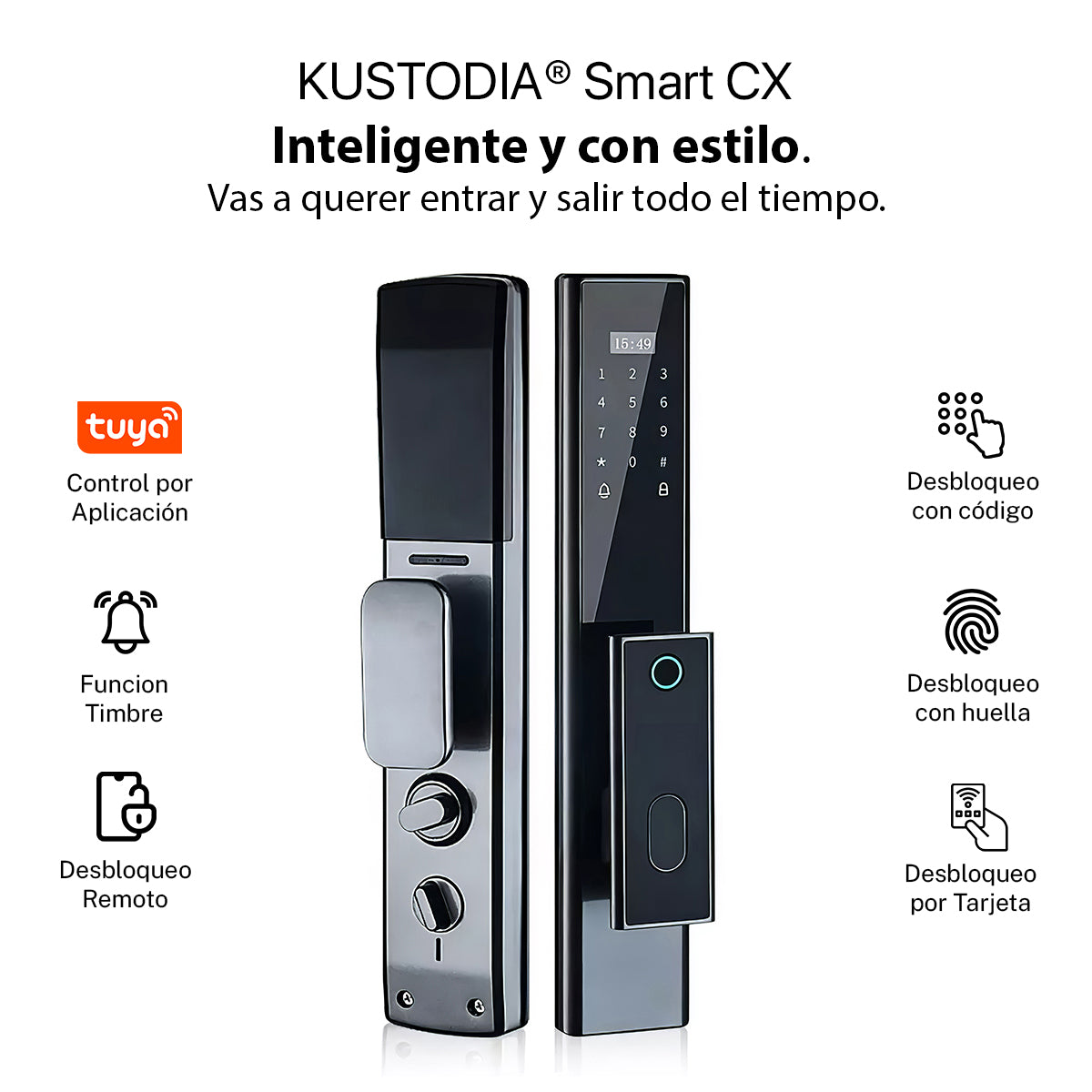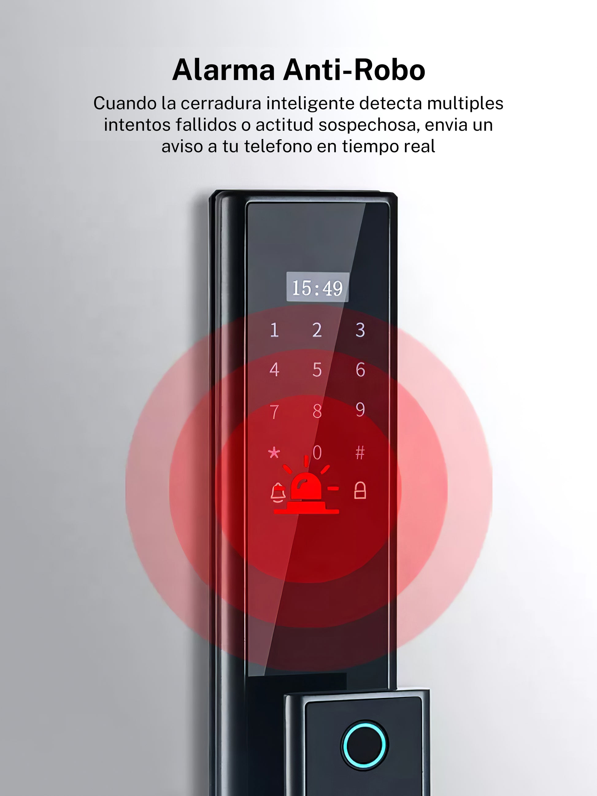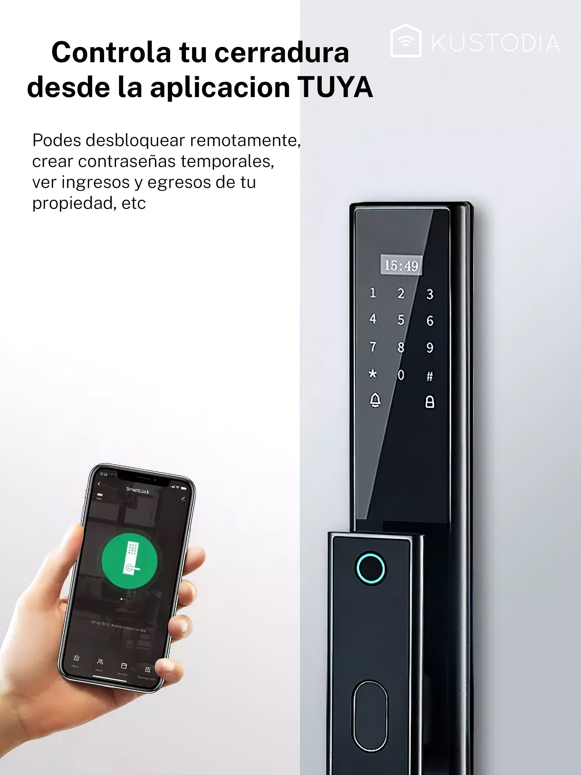 Modos de Apertura: Huella, Código, Tarjeta RFID, Tuya Smart App, Llave de emergencia